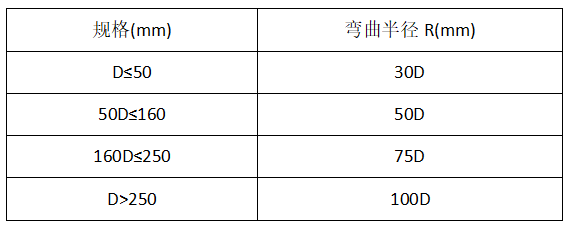 4、管槽轉(zhuǎn)彎時,轉(zhuǎn)彎角度不宜過大,彎曲半徑應符合下列規(guī)定: