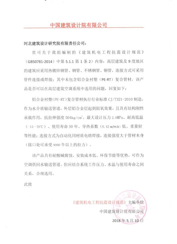 綜上所述,按照長(zhǎng)久及工程造價(jià)考慮,還是選用后者鋁合金襯塑復(fù)合管較為合適。